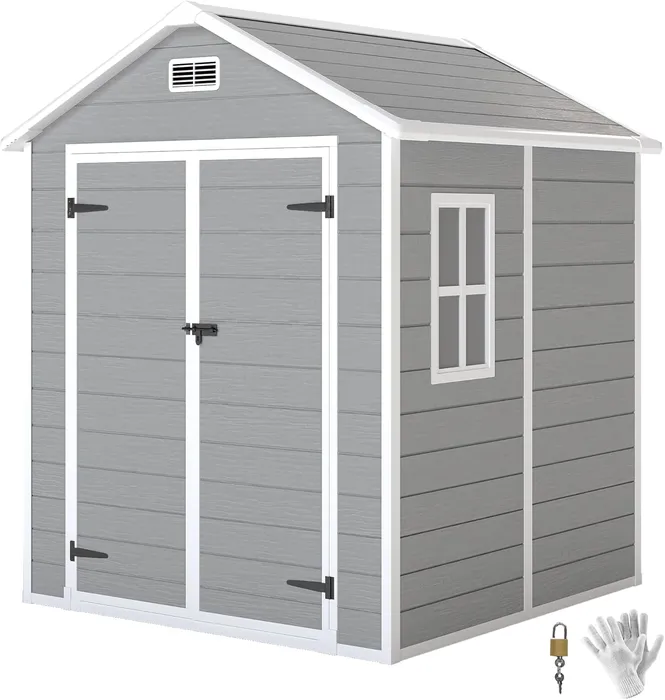 Cet abri de jardin offre un espace de rangement de 162L x 131l cm, idéal pour organiser vos outils et équipements de jardin. Sa construction en résine plastique polypropylène avec effet bois de 12 mm, renforcée d'aluminium, assure une résistance aux éléments extérieurs. Équipé d'une fenêtre transparente de 38,5l x 61,5P cm et de deux aérations, il garantit une bonne luminosité et ventilation. Le toit en appentis aide à éviter l'accumulation de neige et d'eau. L'accès est facilité par des portes doubles à charnières, sécurisées par un verrou et un loquet. Détails d'installation : nécessitant l'intervention de 2 à 3 personnes en environ 3 heures. Veuillez éviter de monter cet abri par temps venteux et porter des gants.