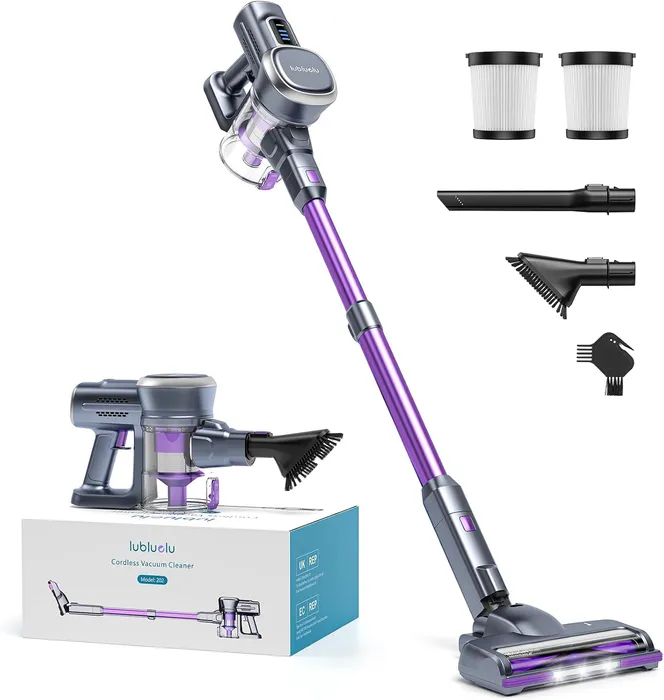 [Aspiration Efficace] L'aspirateur sans fil Lubluelu est muni d'un moteur sans balai, offrant une aspiration jusqu'à 27000pa. Cela permet de retirer facilement la saleté en profondeur dans les tapis. [Position Autonome] Cet aspirateur peut se tenir seul, facilitant ainsi son rangement et son utilisation. [Autonomie Prolongée] Il offre jusqu'à 50 minutes d'utilisation continue. La batterie est amovible et peut être rechargée indépendamment. [Accessoires Inclus] Il comprend une brosse à rouleau et deux filtres, facilement remplaçables. [Polyvalent et Léger] Grâce à ses multiples accessoires et à un tube télescopique, il est adapté au nettoyage de diverses surfaces comme les escaliers, l'intérieur des véhicules et d'autres zones difficiles d'accès.