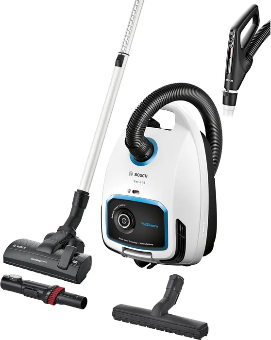 Aspirateur Traîneau Bosch Série 6 ProSilence avec Sac, 66 dB, Filtre HEPA, Puissant, Blanc