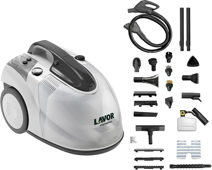 Ce nettoyeur vapeur professionnel utilise la vapeur à haute température pour éliminer les germes et bactéries. Il est également conçu pour traiter efficacement les punaises de lit, insectes et œufs à des températures élevées. Équipé d'une fonction d'aspiration, il permet de retirer la saleté des surfaces traitées. La vapeur atteint une température de 152°C avec une pression de 5 bars. La chaudière, en acier inoxydable AISI 304, peut être remplie en continu. Un système de filtration HEPA capture les allergènes, fumées, poils d'animaux et spores de moisissures. Ce système est adapté pour le nettoyage et la désinfection écologique de différentes surfaces telles que les sols, sanitaires et éviers, sans produits chimiques agressifs.