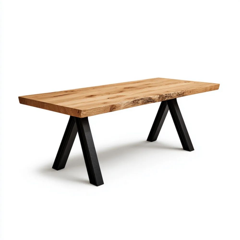 Matériau et finitionLe plateau est réalisé en chêne massif, offrant une couleur naturelle unique et une texture robuste. Les pieds en métal noir assurent une stabilité optimale.