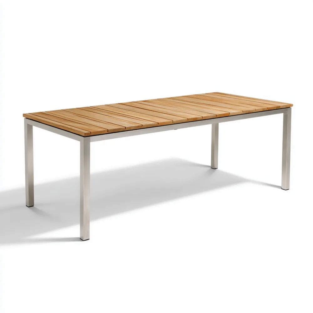 Matériau et artisanatFabriquée avec un plateau en bois de teck durable et une structure en acier inoxydable, cette table offre une résistance exceptionnelle et un look raffiné.
